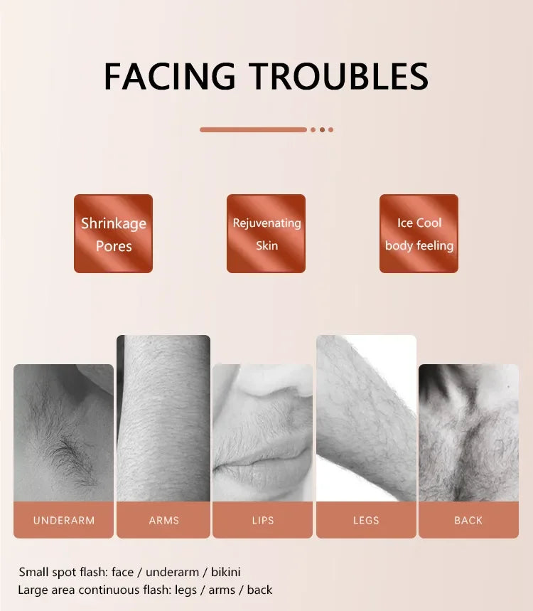- Three-wavelength diode laser (808 nm, 755 nm, 1064 nm) with a 12 × 25 cm spot and up to 50 J/cm2 energy lets you target different hair colors and skin tones across face, body, bikini, and underarms.